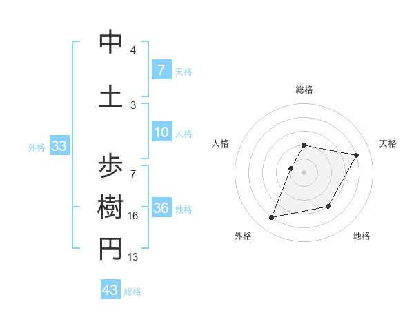 中土 歩樹円さんを姓名の画数から五運を鑑定