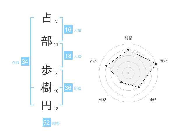 占部 歩樹円さんを姓名の画数から五運を鑑定