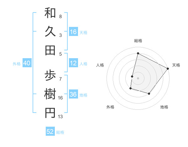 和久田 歩樹円さんを姓名の画数から五運を鑑定