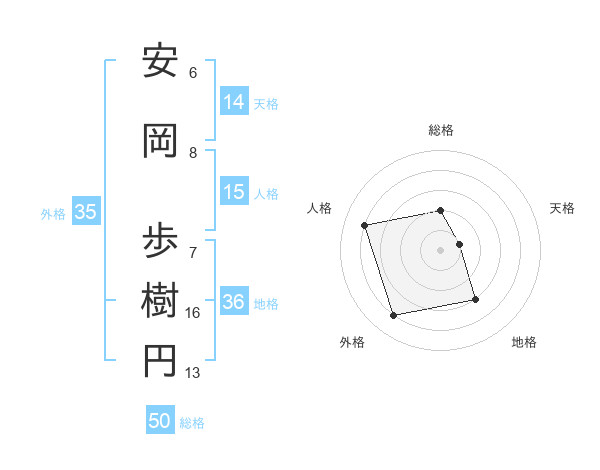 安岡 歩樹円さんを姓名の画数から五運を鑑定