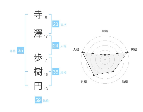 寺澤 歩樹円さんの総格は59画の1点!