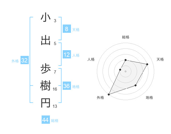 小出 歩樹円さんの外格は32画の5点!