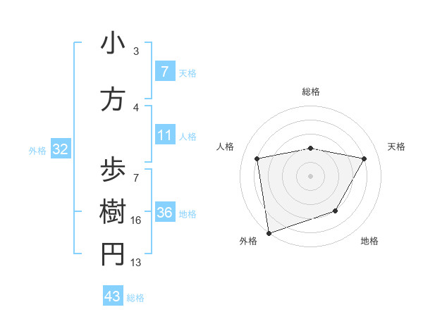 小方 歩樹円さんの外格は32画の5点!