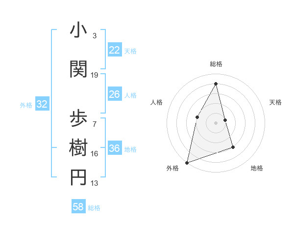 小関 歩樹円さんを姓名の画数から五運を鑑定