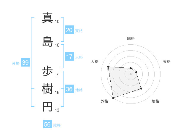 真島 歩樹円さんの外格は39画の5点!
