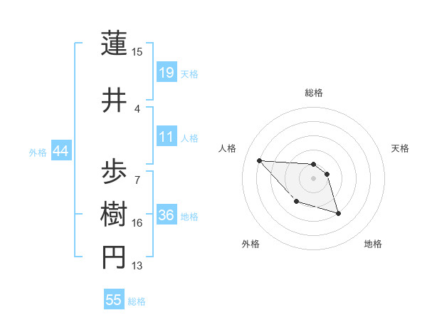 蓮井 歩樹円さんを姓名の画数から五運を鑑定