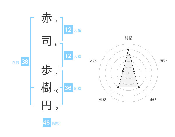 赤司 歩樹円さんの総格は48画の4点!