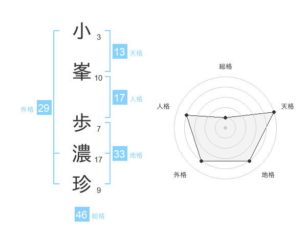 小峯 歩濃珍さんを姓名の画数から五運を鑑定