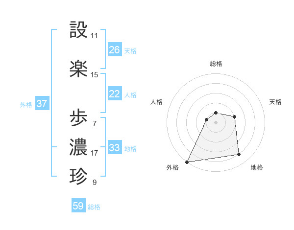 設楽 歩濃珍さんを姓名の画数から五運を鑑定
