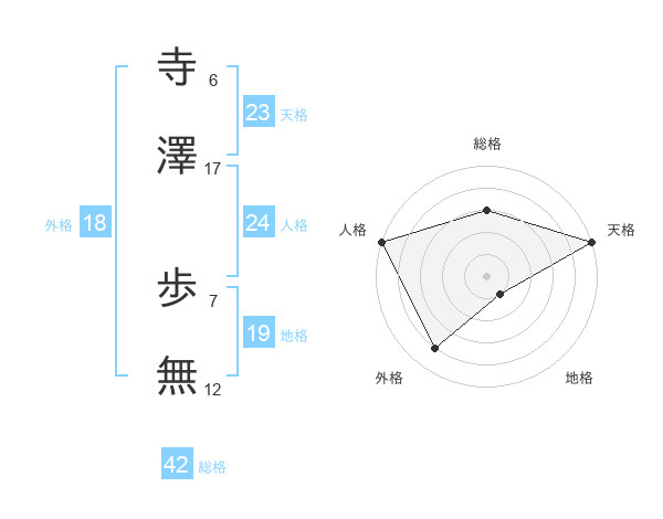寺澤 歩無さんの天格は23画の5点!