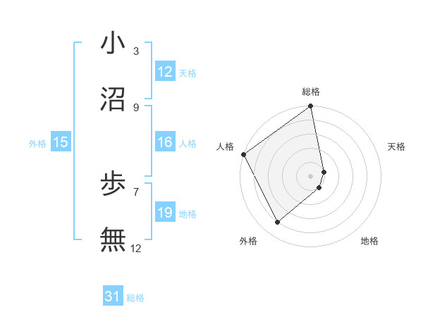 小沼 歩無さんの総格は31画の5点!