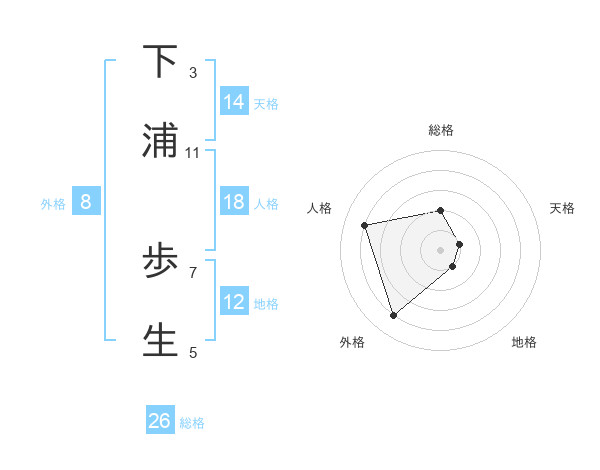 下浦 歩生さんを姓名の画数から五運を鑑定
