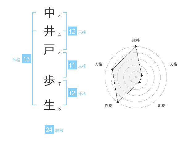 中井戸 歩生さんの総格は24画の5点!