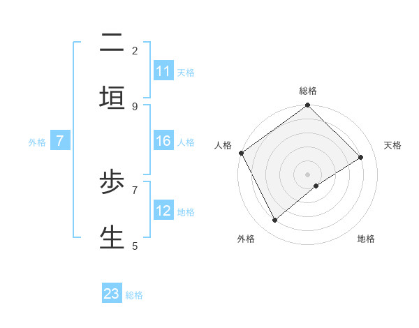 二垣 歩生さんを姓名の画数から五運を鑑定