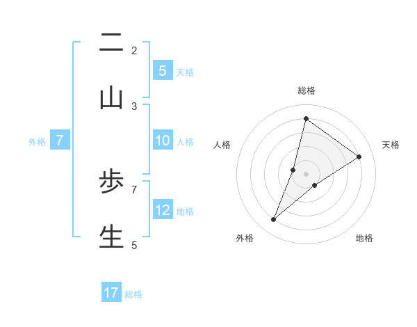 二山 歩生さんの総格は17画の4点!