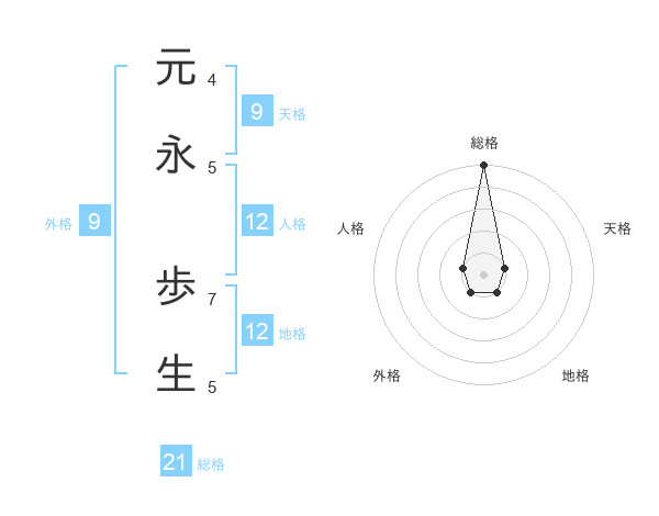 元永 歩生さんの総格は21画の5点!
