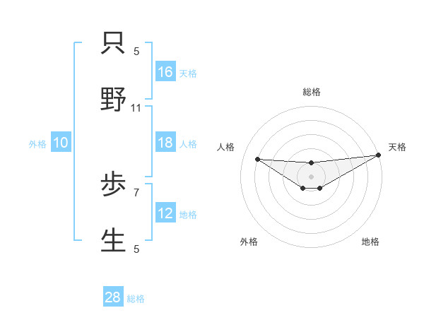 只野 歩生さんの総格は28画の1点!