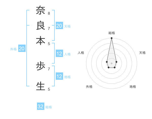 奈良本 歩生さんを姓名の画数から五運を鑑定