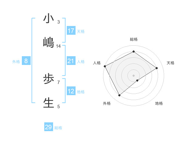 小嶋 歩生さんの天格は17画の4点!