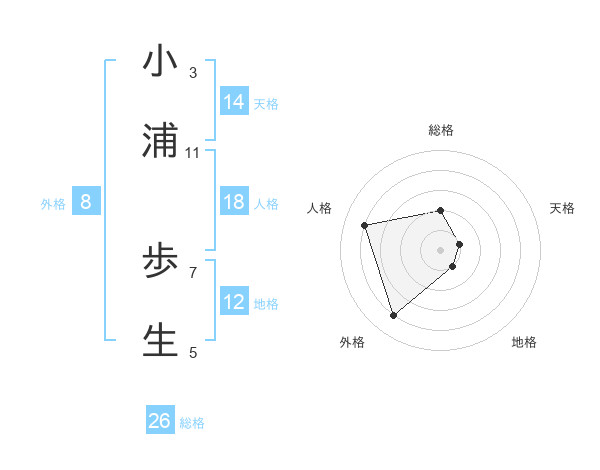 小浦 歩生さんを姓名の画数から五運を鑑定
