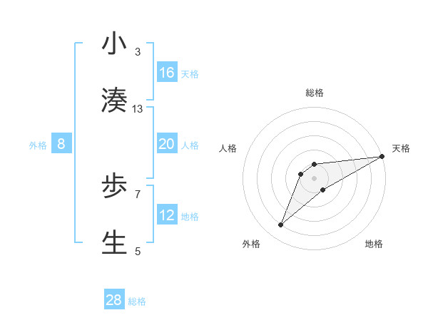小湊 歩生さんを姓名の画数から五運を鑑定