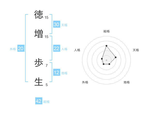 徳増 歩生さんを姓名の画数から五運を鑑定