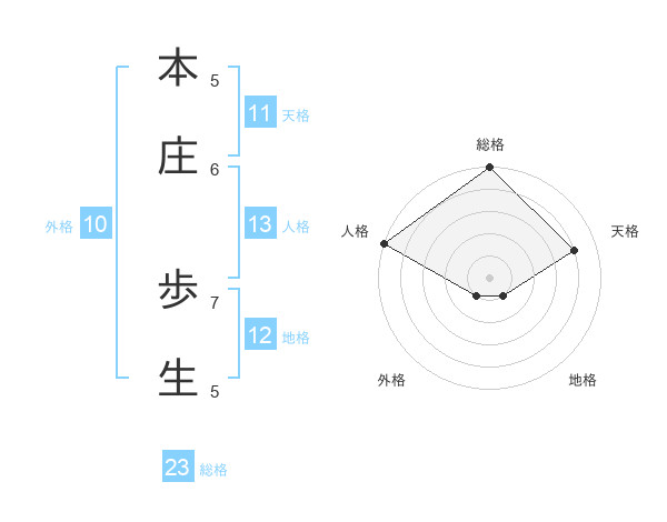 本庄 歩生さんを姓名の画数から五運を鑑定