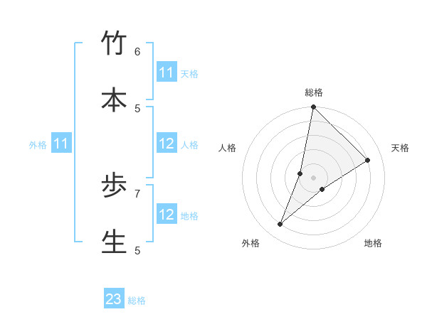竹本 歩生さんの天格は11画の4点!