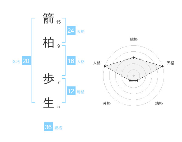 箭柏 歩生さんの天格は24画の5点!