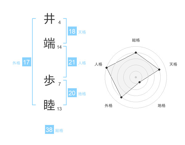 井端 歩睦さんを姓名の画数から五運を鑑定
