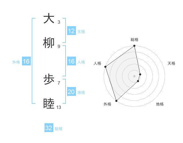 大柳 歩睦さんを姓名の画数から五運を鑑定