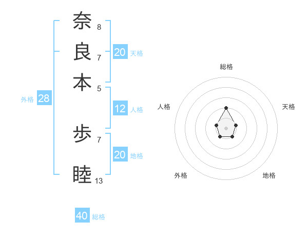 奈良本 歩睦さんを姓名の画数から五運を鑑定