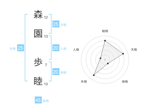 森園 歩睦さんの総格は45画の4点!