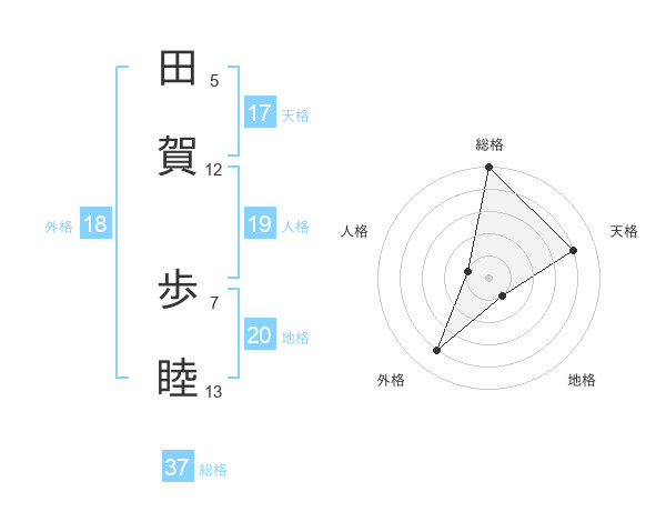 田賀 歩睦さんを姓名の画数から五運を鑑定