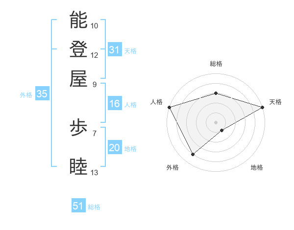 能登屋 歩睦さんを姓名の画数から五運を鑑定
