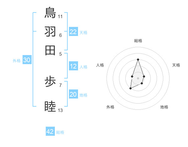 鳥羽田 歩睦さんを姓名の画数から五運を鑑定