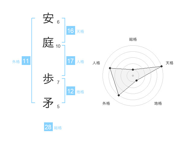 安庭 歩矛さんを姓名の画数から五運を鑑定