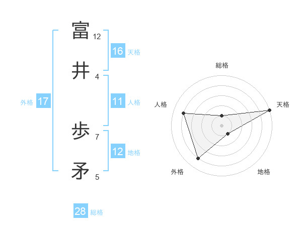 富井 歩矛さんの天格は16画の5点!