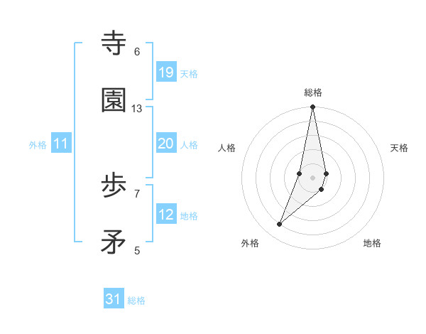 寺園 歩矛さんの総格は31画の5点!