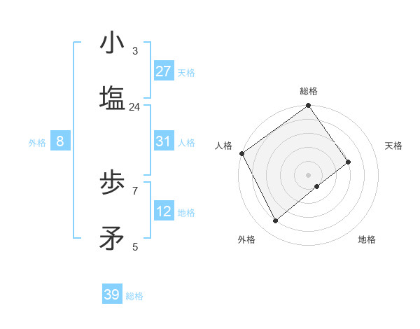 小塩 歩矛さんを姓名の画数から五運を鑑定