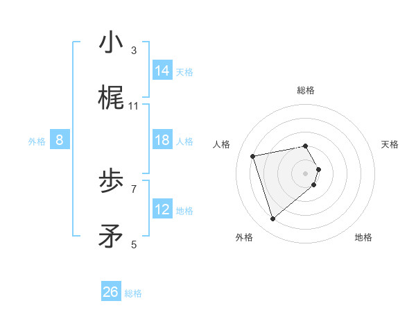 小梶 歩矛さんの天格は14画の1点!