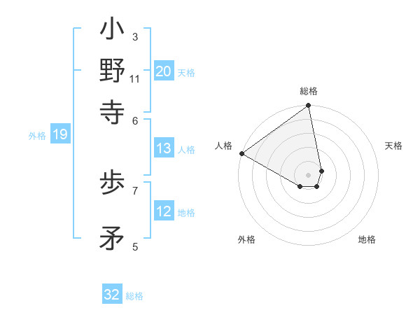 小野寺 歩矛さんを姓名の画数から五運を鑑定