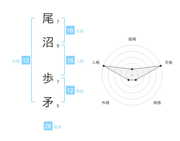 尾沼 歩矛さんを姓名の画数から五運を鑑定