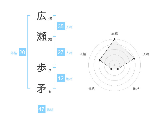広瀬 歩矛さんを姓名の画数から五運を鑑定