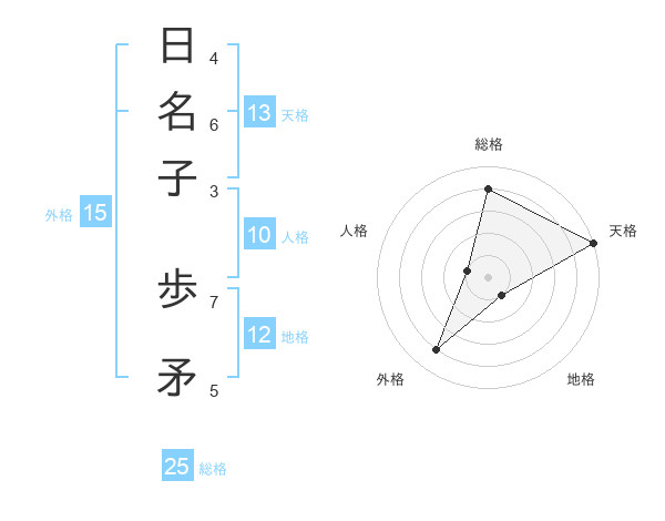 日名子 歩矛さんの総格は25画の4点!
