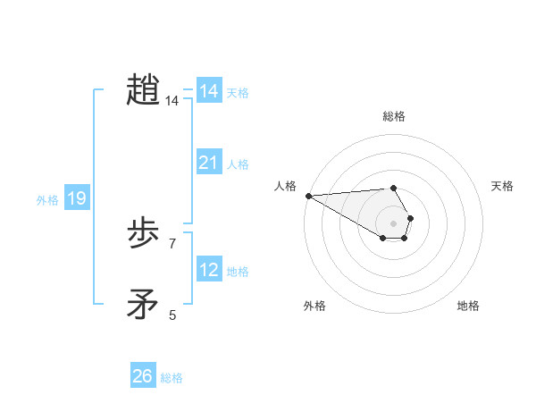 趙 歩矛さんを姓名の画数から五運を鑑定