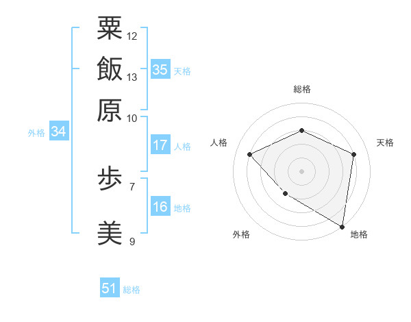 粟飯原 歩美さんの総格は51画の3点!