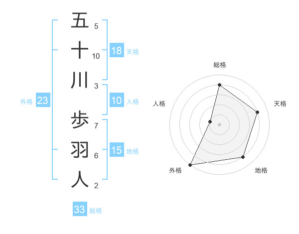 五十川 歩羽人さんの外格は23画の5点!