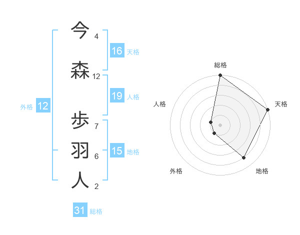 今森 歩羽人さんを姓名の画数から五運を鑑定