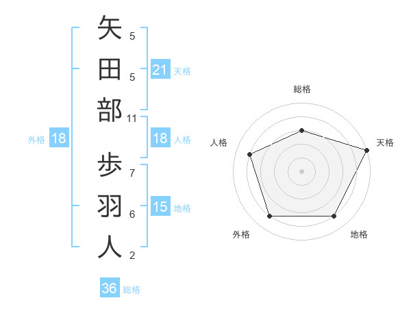 矢田部 歩羽人さんの天格は21画の5点!